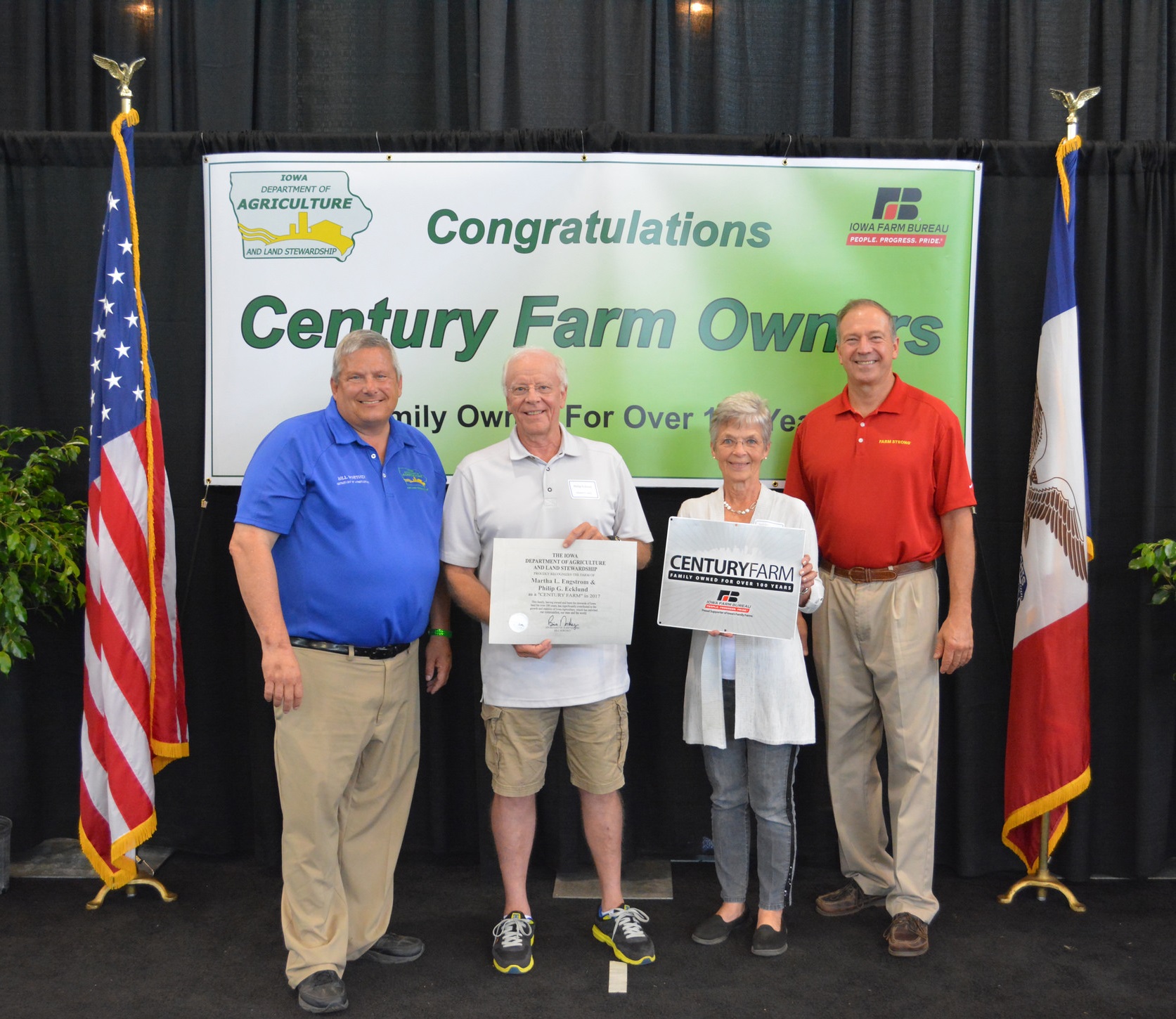 The awards were presented Iowa Secretary of Agriculture Bill Northey, Craig Hill, Iowa Farm Bureau Federation president Craig Hill, and Iowa Farm Bureau Federation vice president Joe Heinrich.