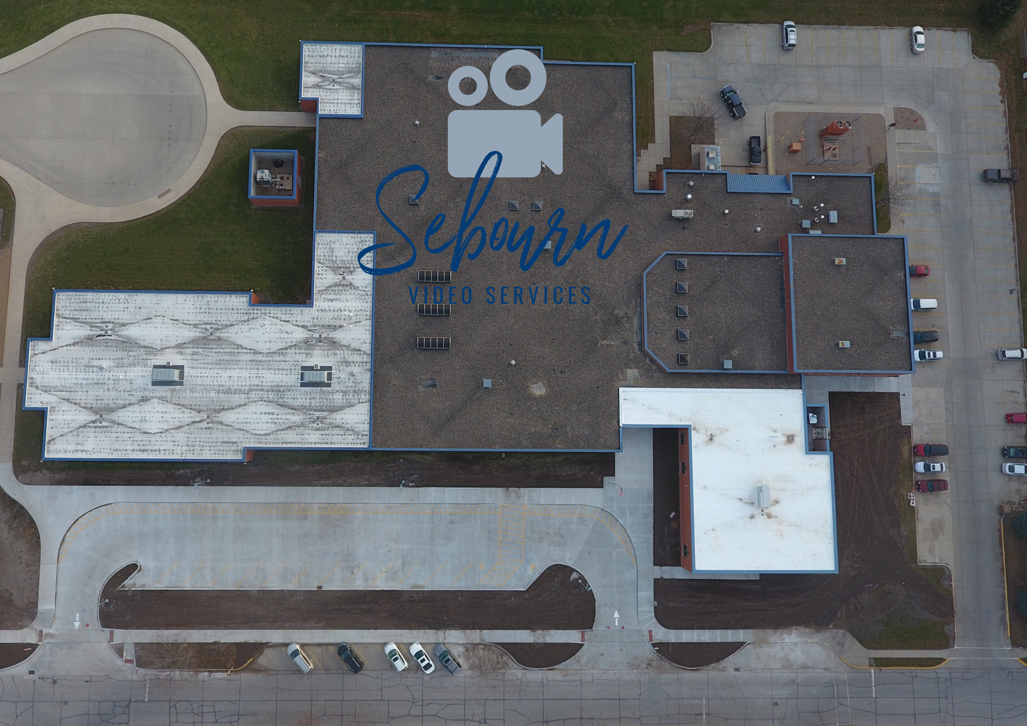 The aerial photos show the two additions to the 20-year-old building. The space with the lighter roof on the right was added when the Scranton building was closed.
