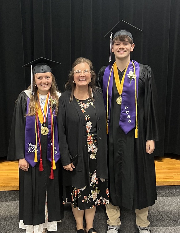 Honor graduates at Paton-Churdan (above) were valedictorian Grace Cullum (left) and salutatorian Kinnick Steimel (right). They’re pictured with principal Annie Smith.