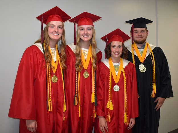 Honor graduates at Greene County (below) were (pictured, from left) salutatorian Emma Shipley and co-valedictorians Ella Shipley, Hailey Carman and Kamden Kinne.
